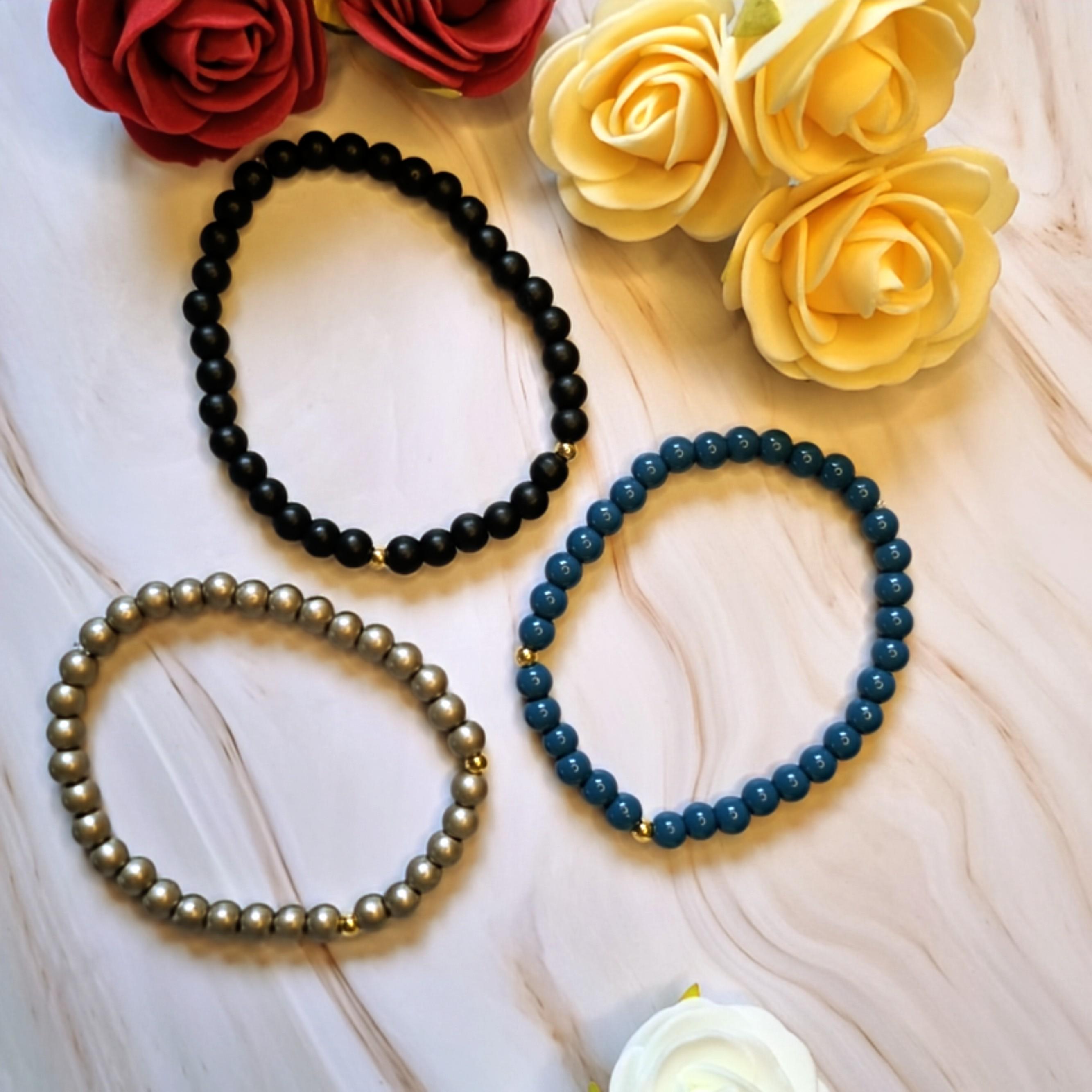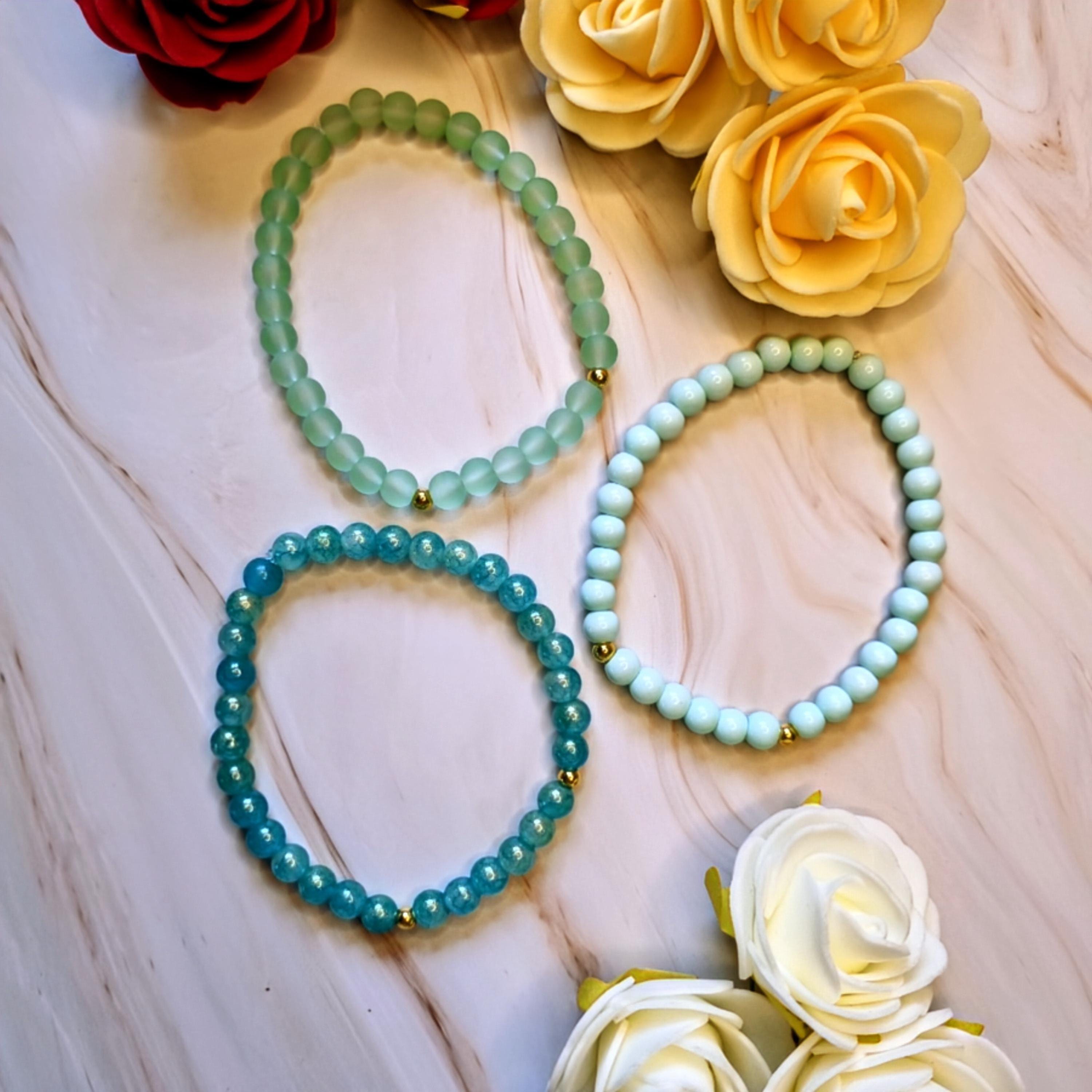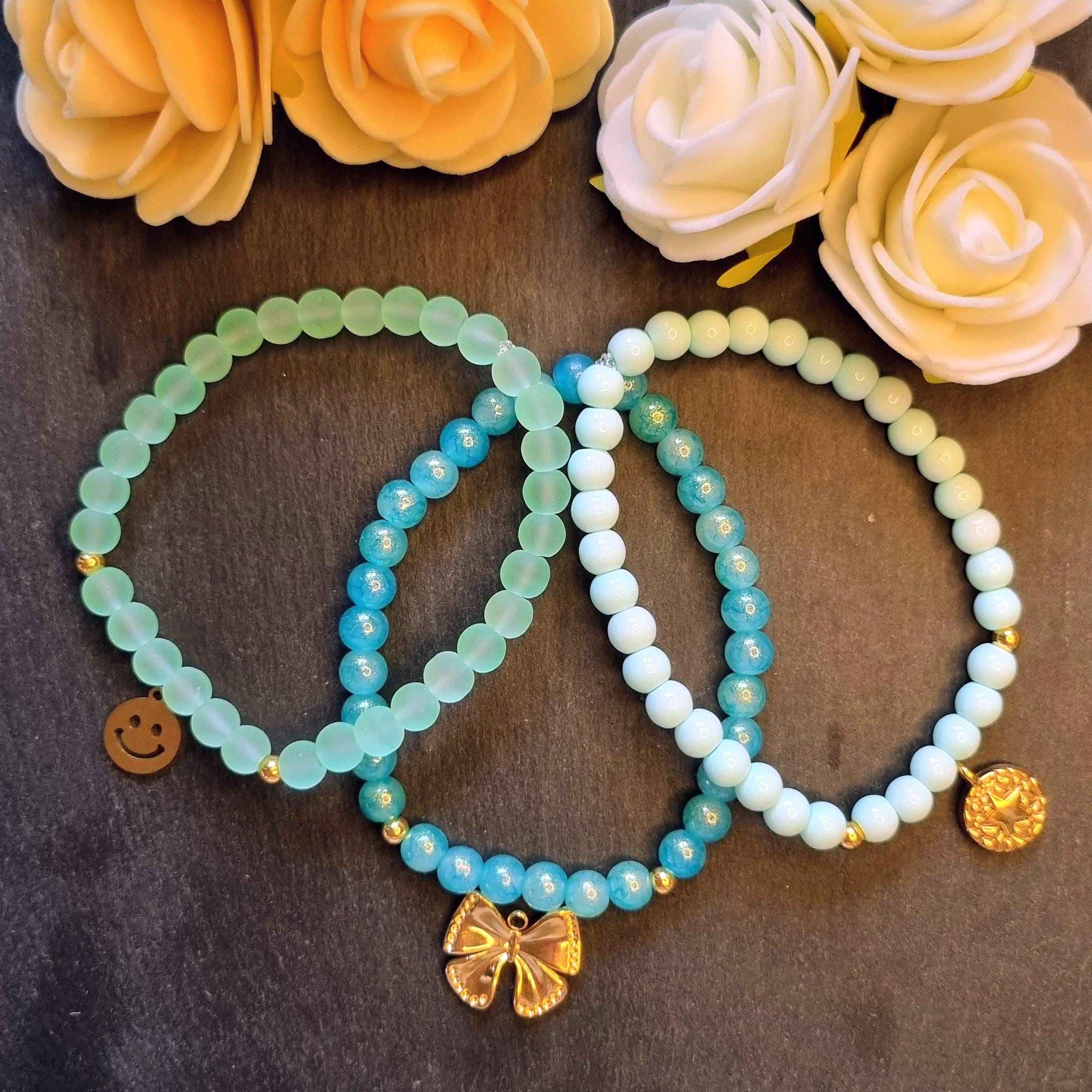Each bracelet is carefully crafted with high-quality glass beads and finished with 18k gold-plated spacer beads, giving the design a warm, elegant look.