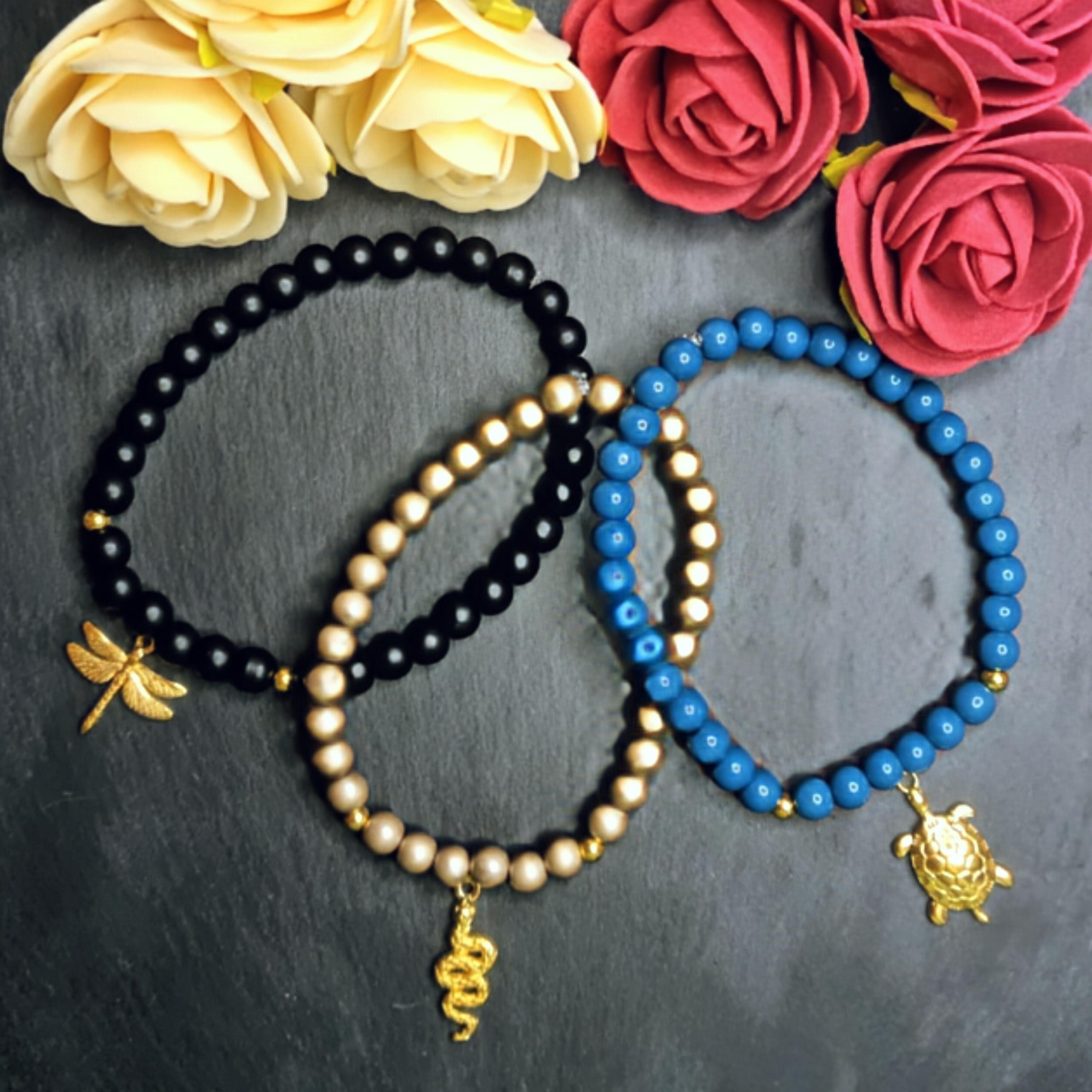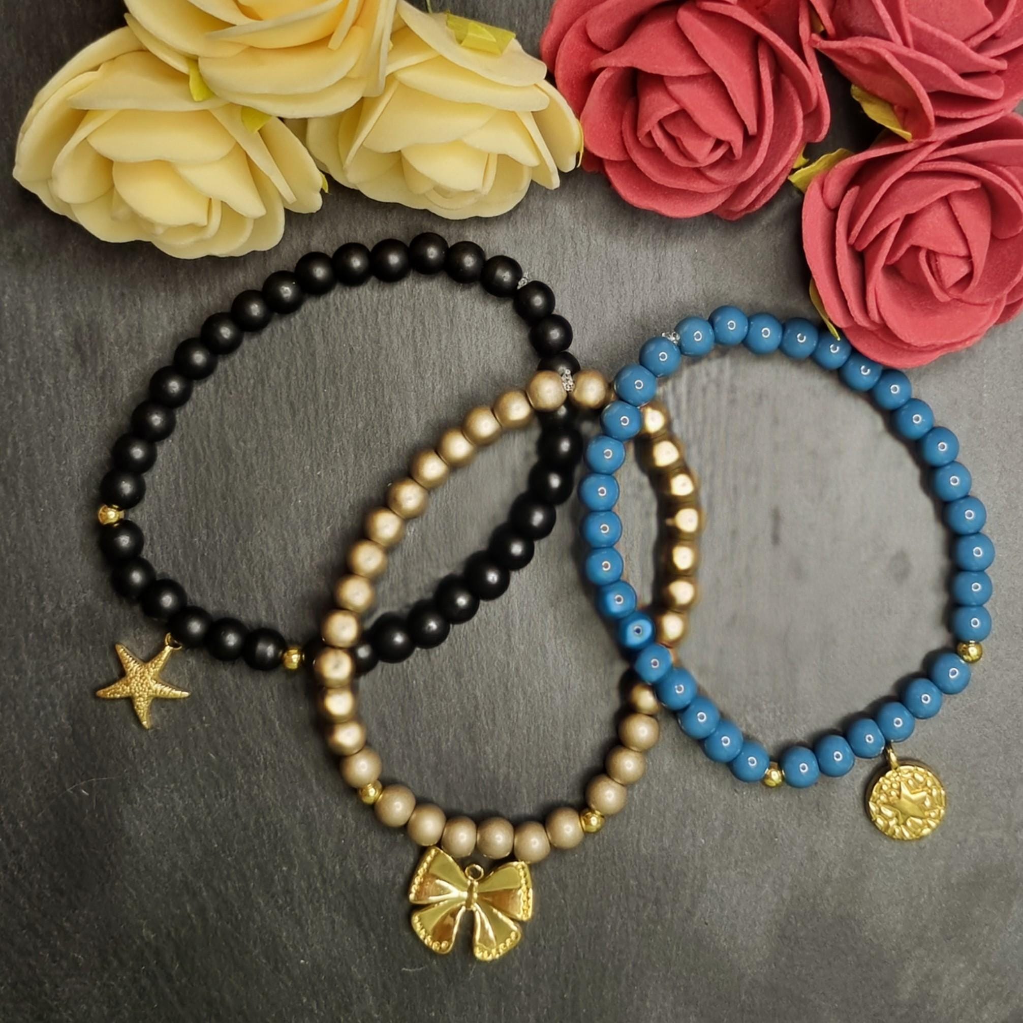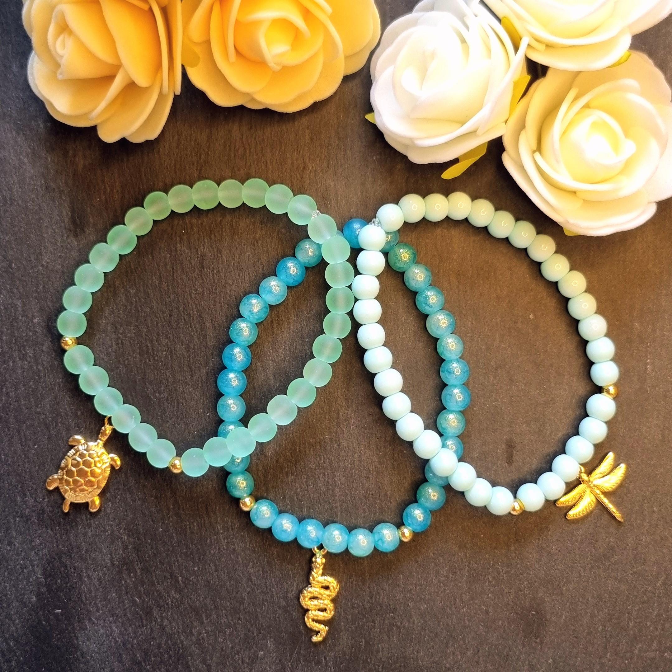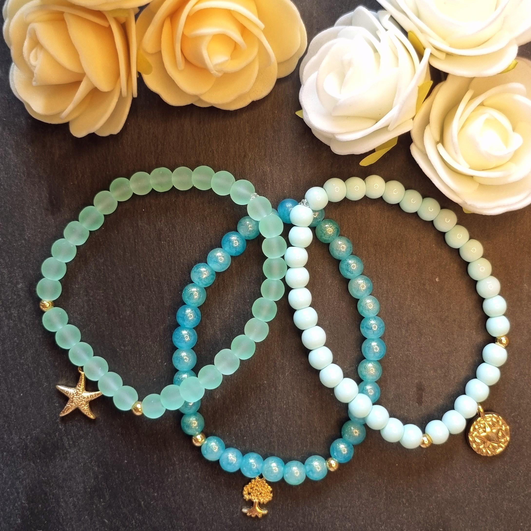 Each bracelet is carefully crafted with high-quality glass beads and finished with 18k gold-plated spacer beads, giving the design a warm, elegant look.