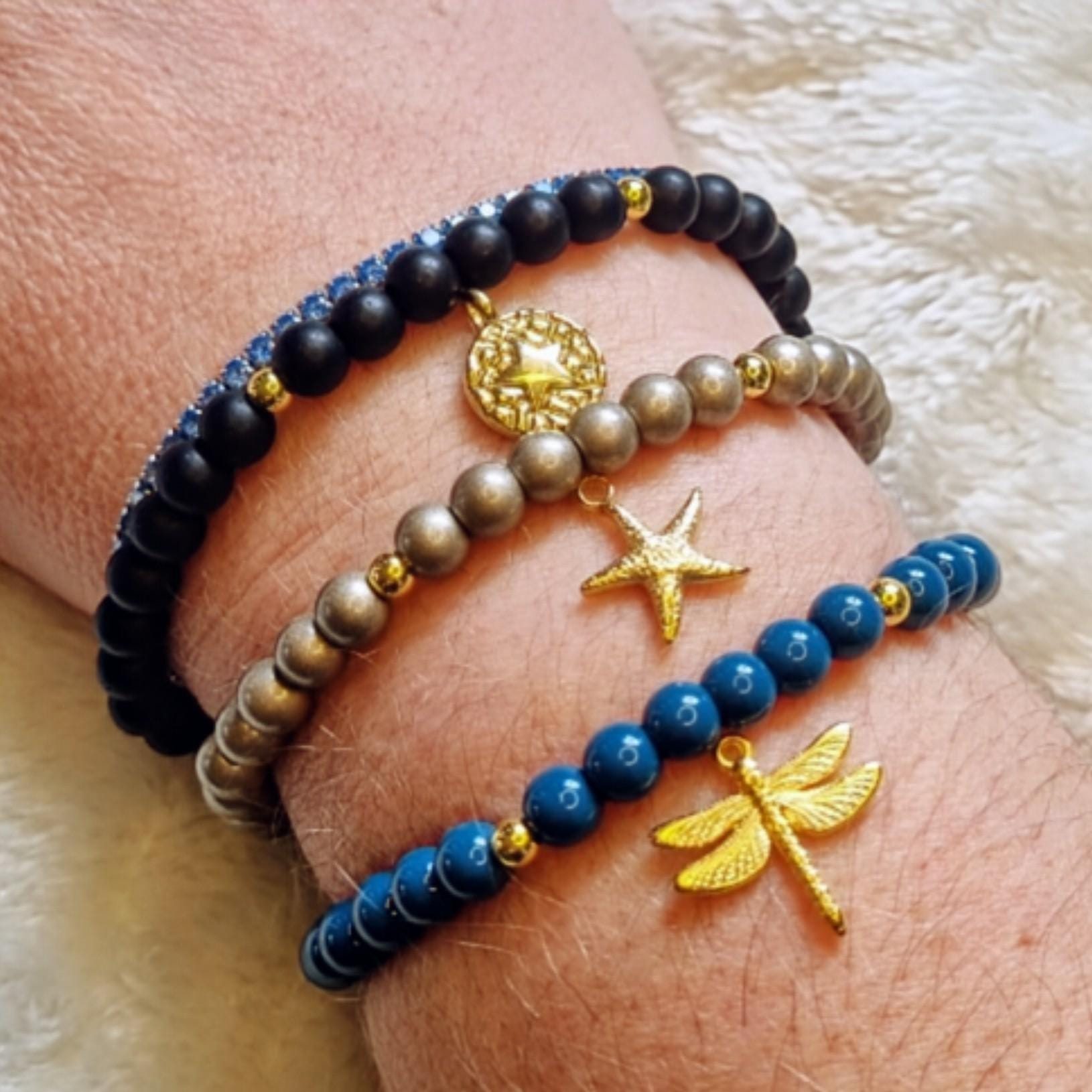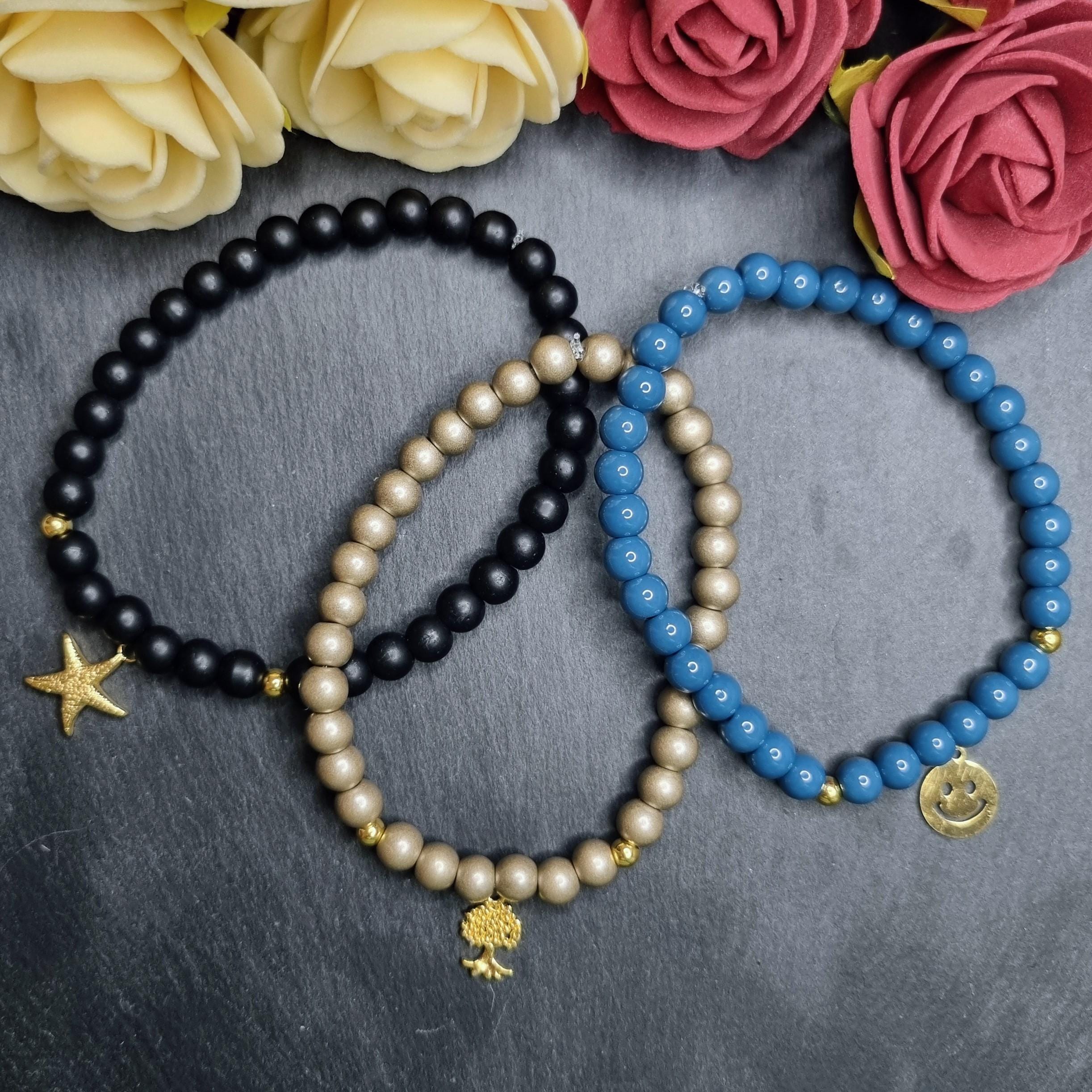 The highlight of each bracelet is a delicate, gold-plated stainless steel charm that you can choose individually – whether a star, dragonfly, bow, smiley face, or tree of life. Each charm represents positive energy, joy, and style.