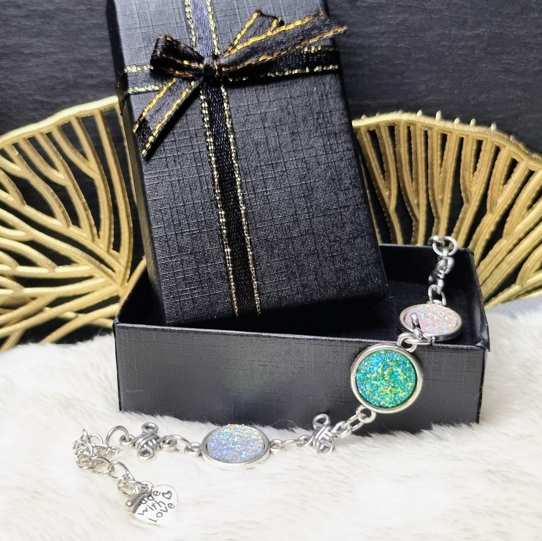 With a stainless steel clasp and robust extension chain, the bracelet is durable, colorfast and comfortable to wear – perfect for everyday use or as a gift.