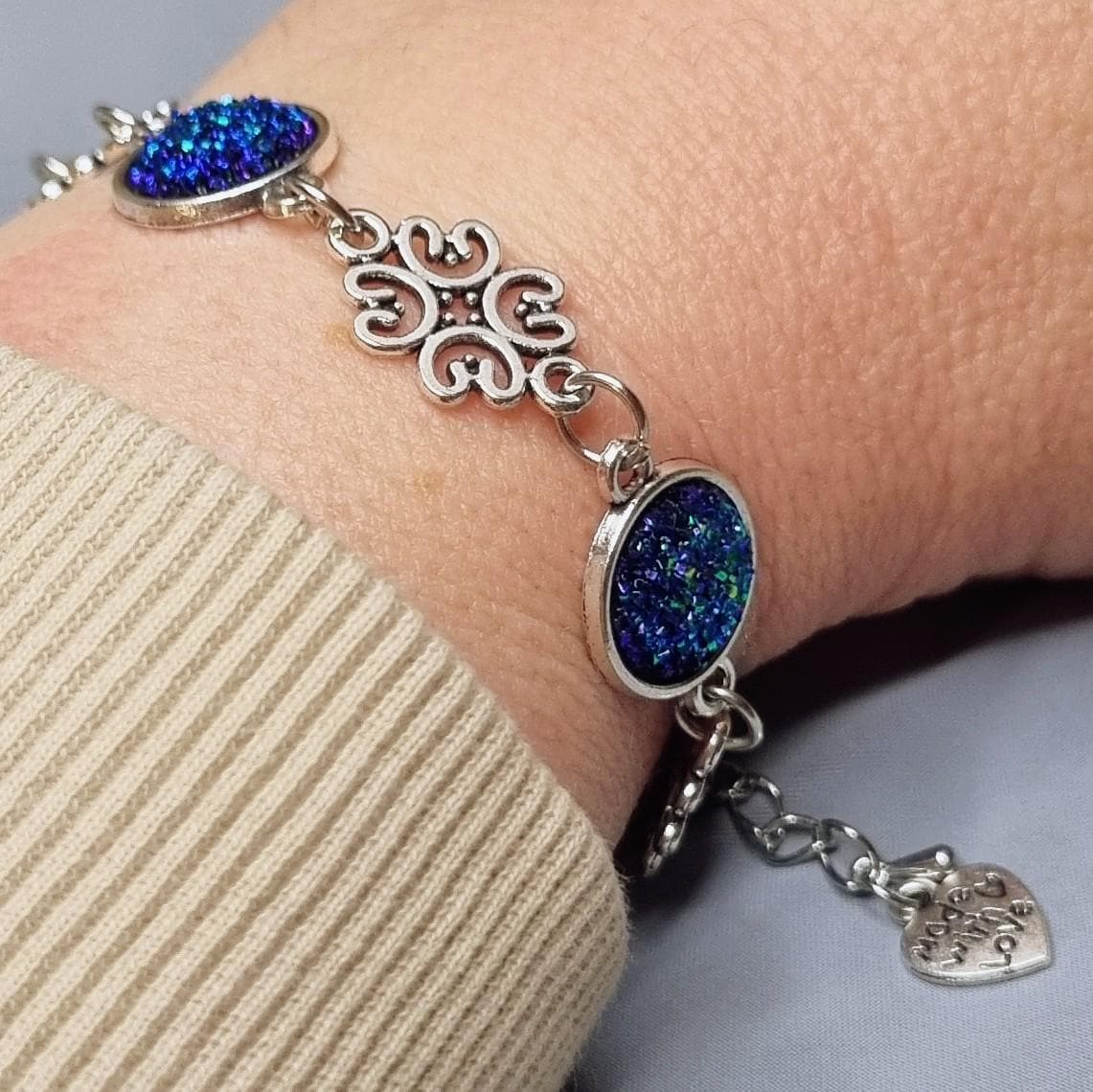 This bracelet is handcrafted, comfortable to wear, and features a sturdy stainless steel extension – including a small "Made with Love" charm that lovingly completes the design. Perfect as a gift or as a special accent to your own style.