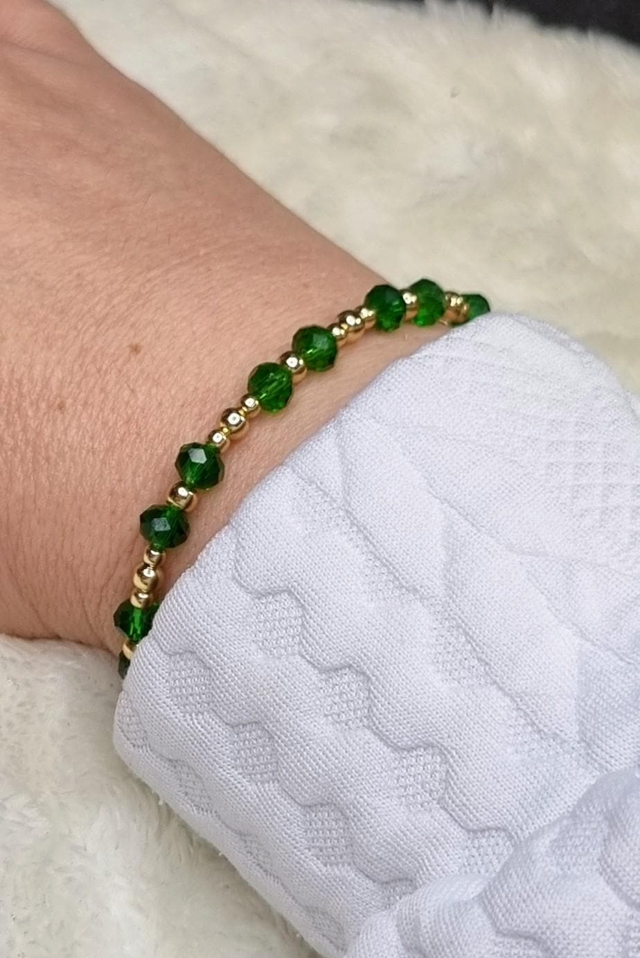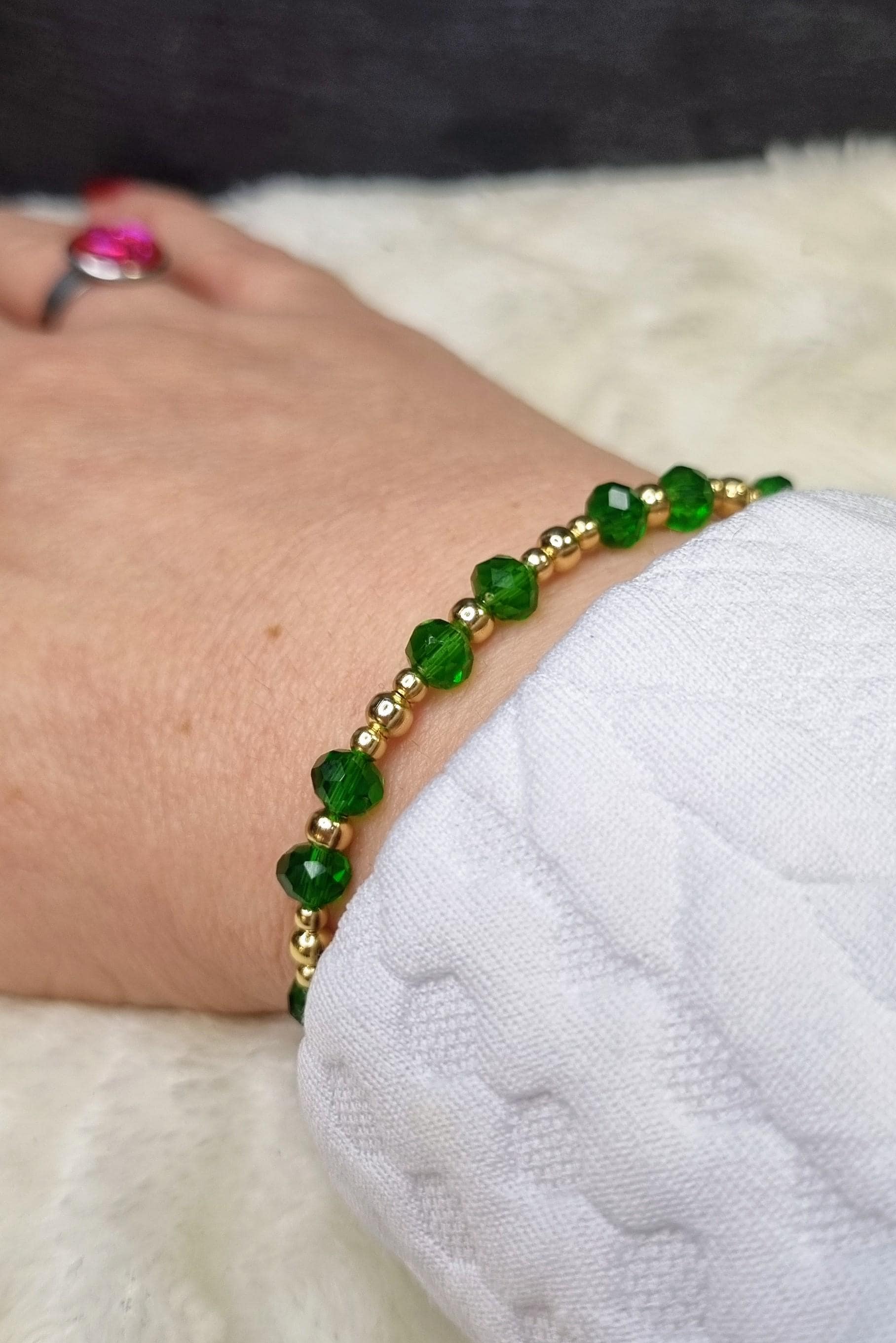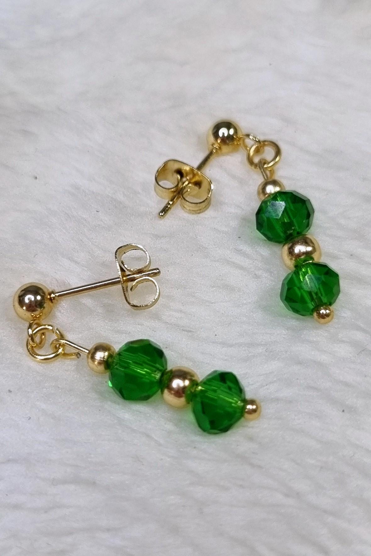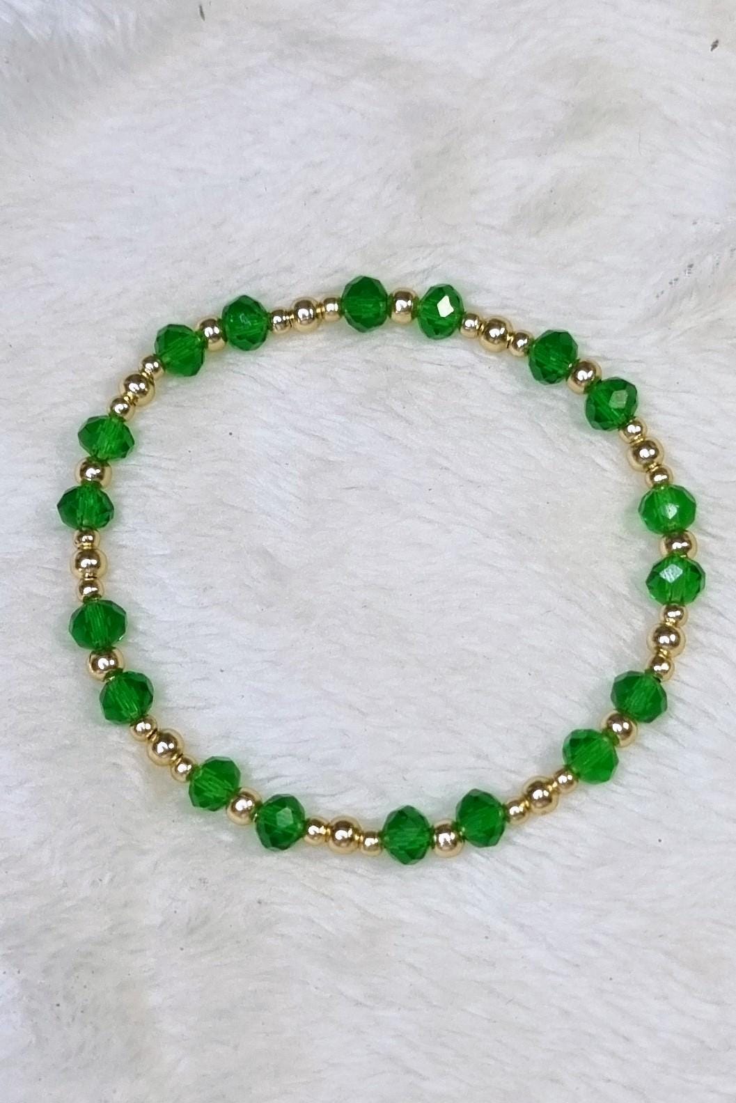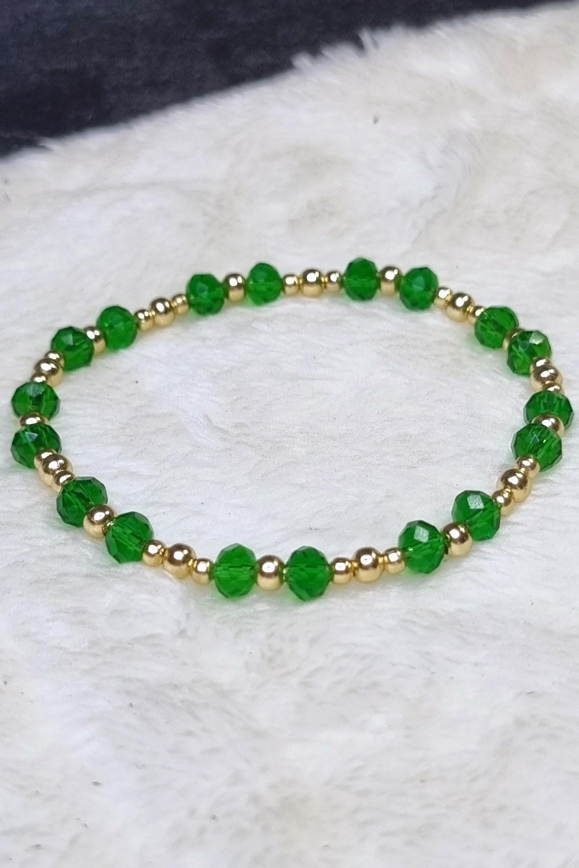An elegant jewelry set in vibrant green, combined with gold-plated stainless steel for a warm, sophisticated look. The faceted glass beads add a subtle sparkle and harmonize beautifully with the gold-colored stainless steel spacer beads.