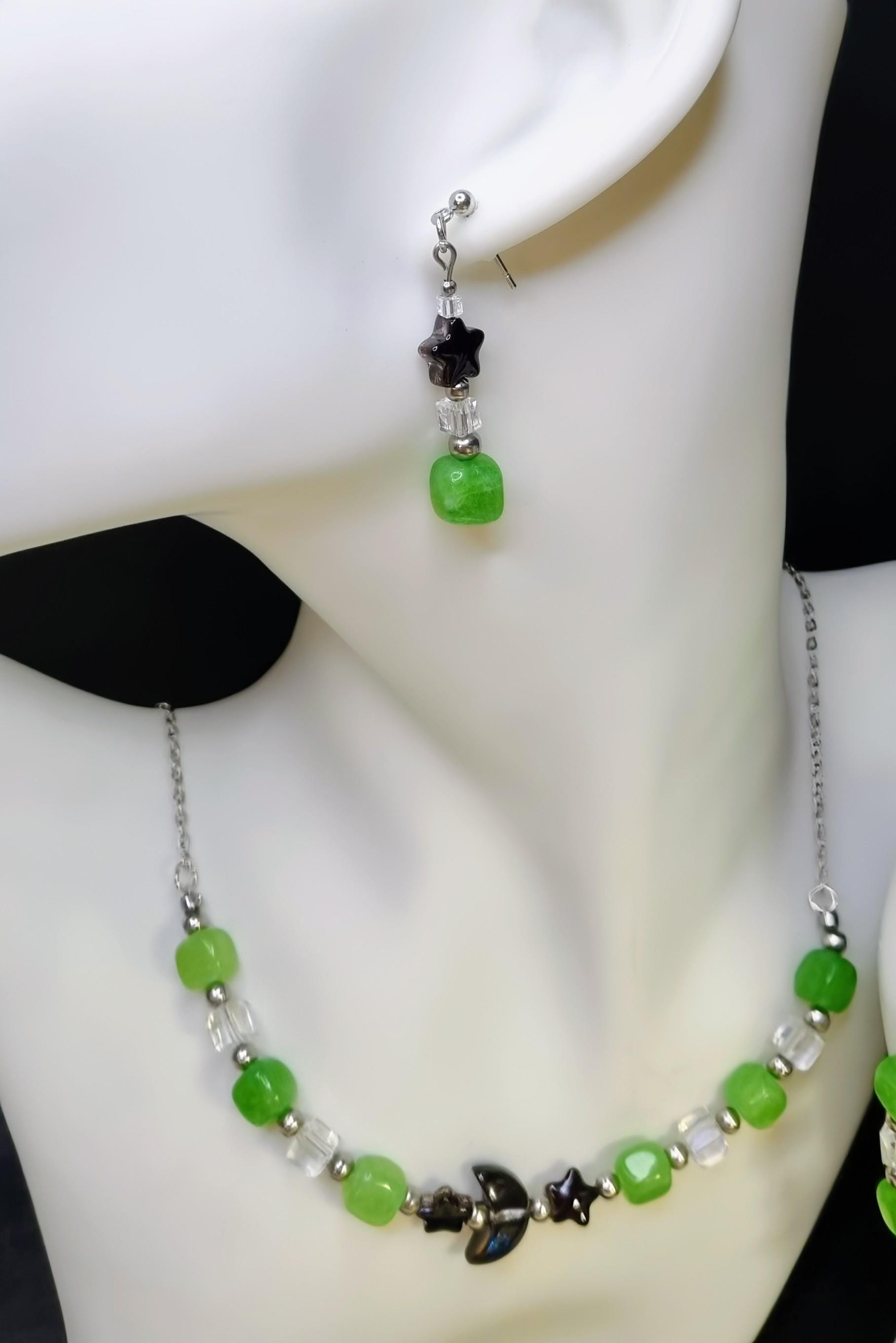 Peridot Jewelry Set Moon & Star | Stainless Steel Necklace, Bracelet, Earrings | Green Natural Stone | Magnetic Clasp | Handmade Gift