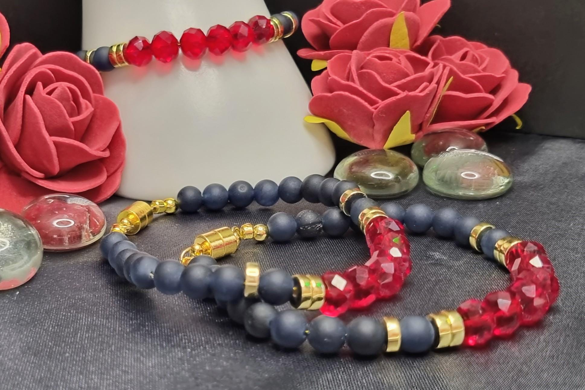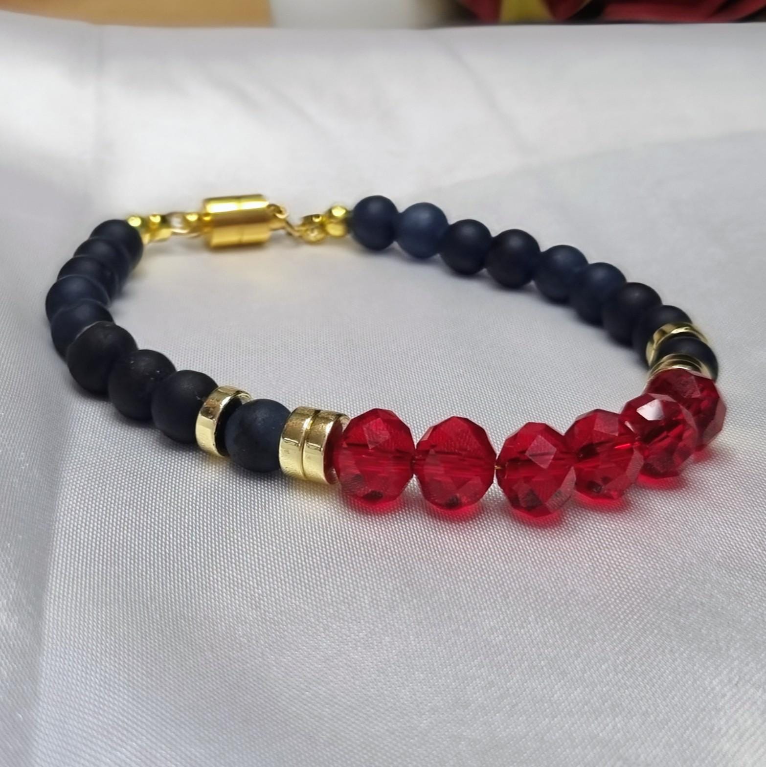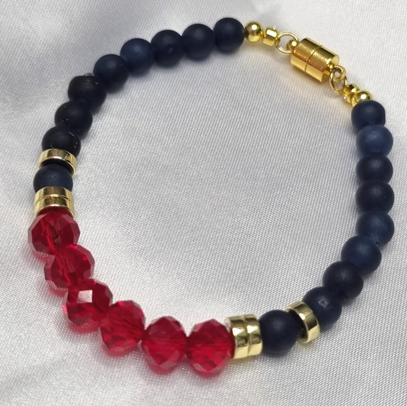 Midnight Blue & Red Bracelet / Magnetic Clasp / 18K Gold Plated Stainless Steel