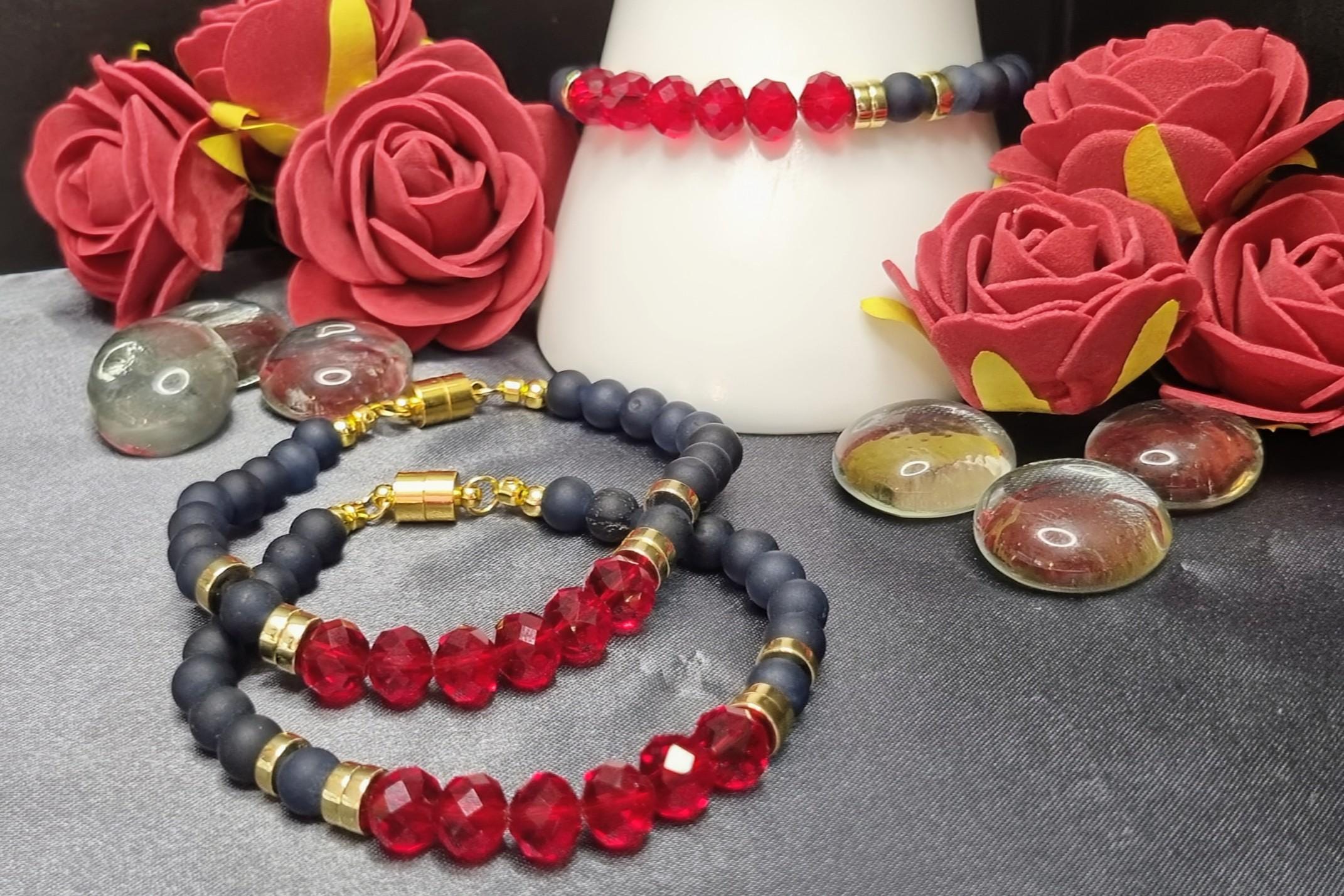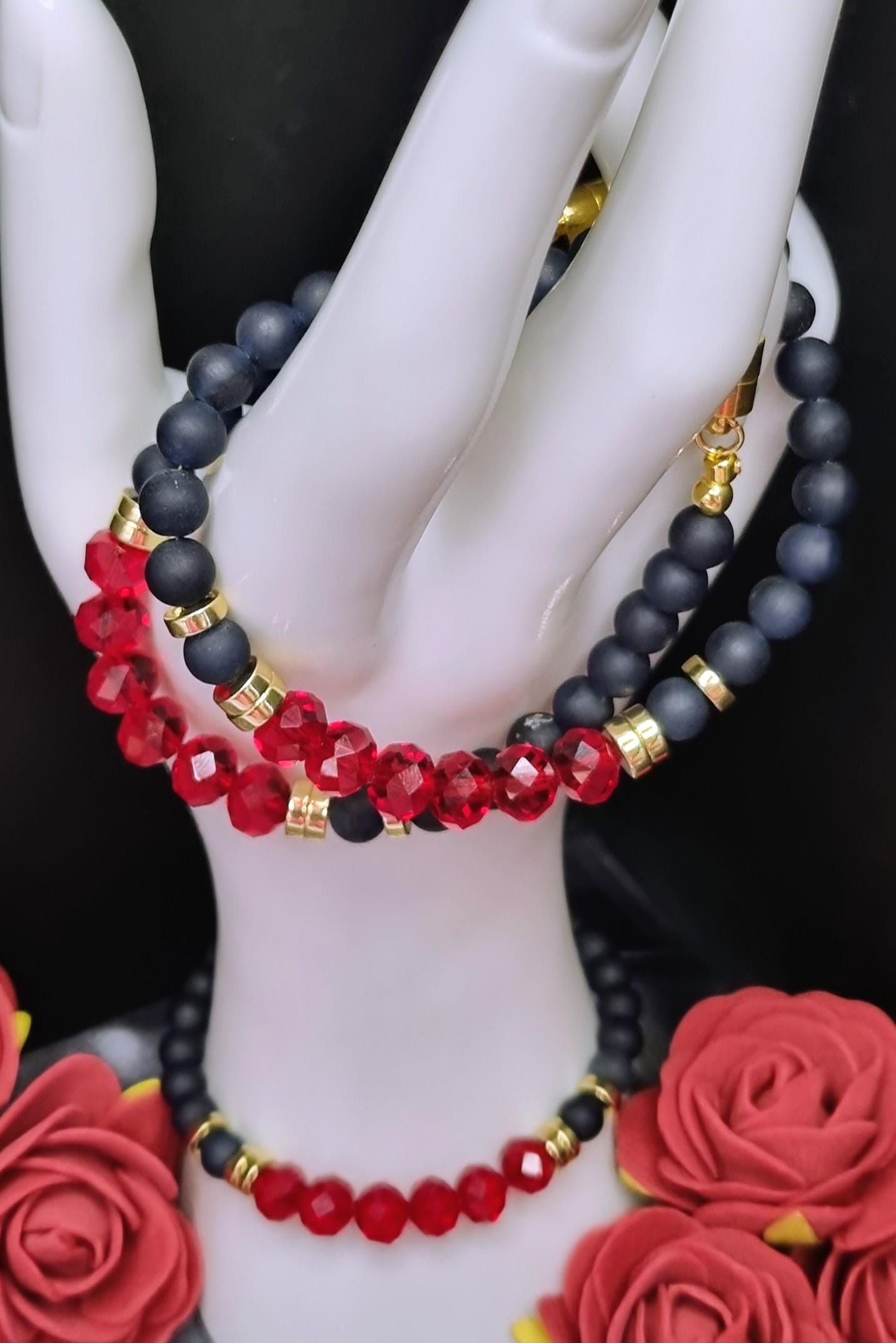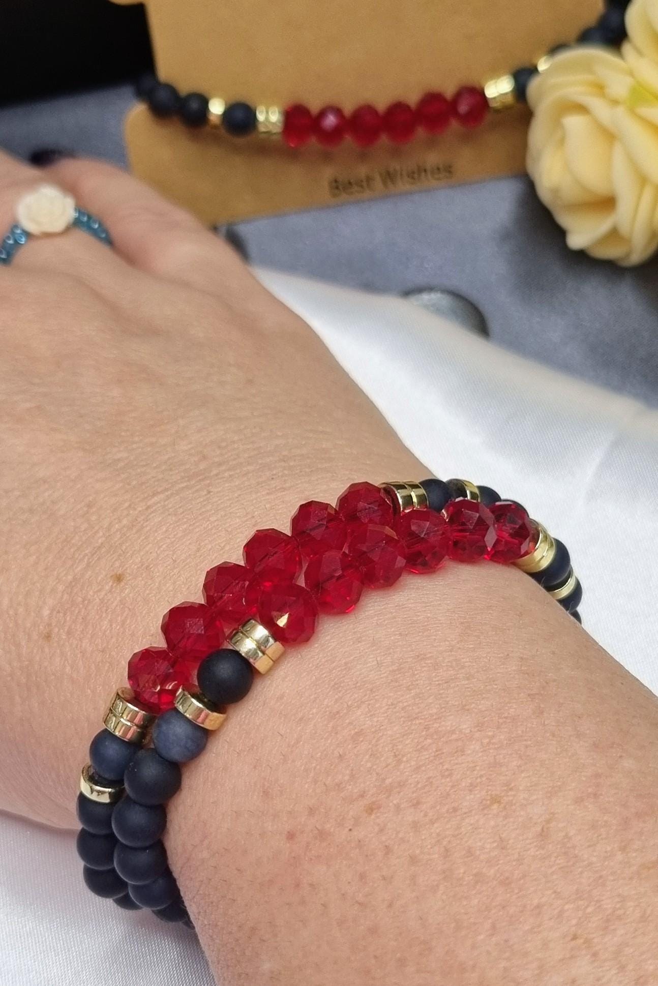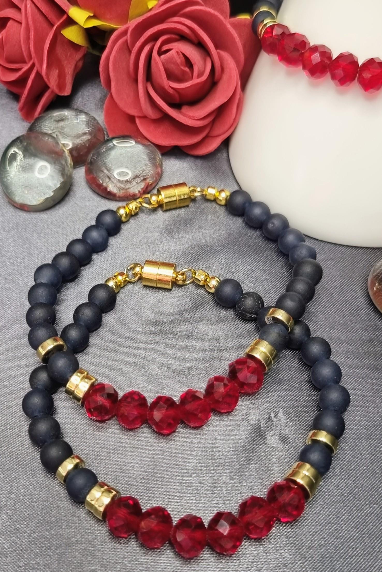 Midnight Blue & Red Bracelet / Magnetic Clasp / 18K Gold Plated Stainless Steel