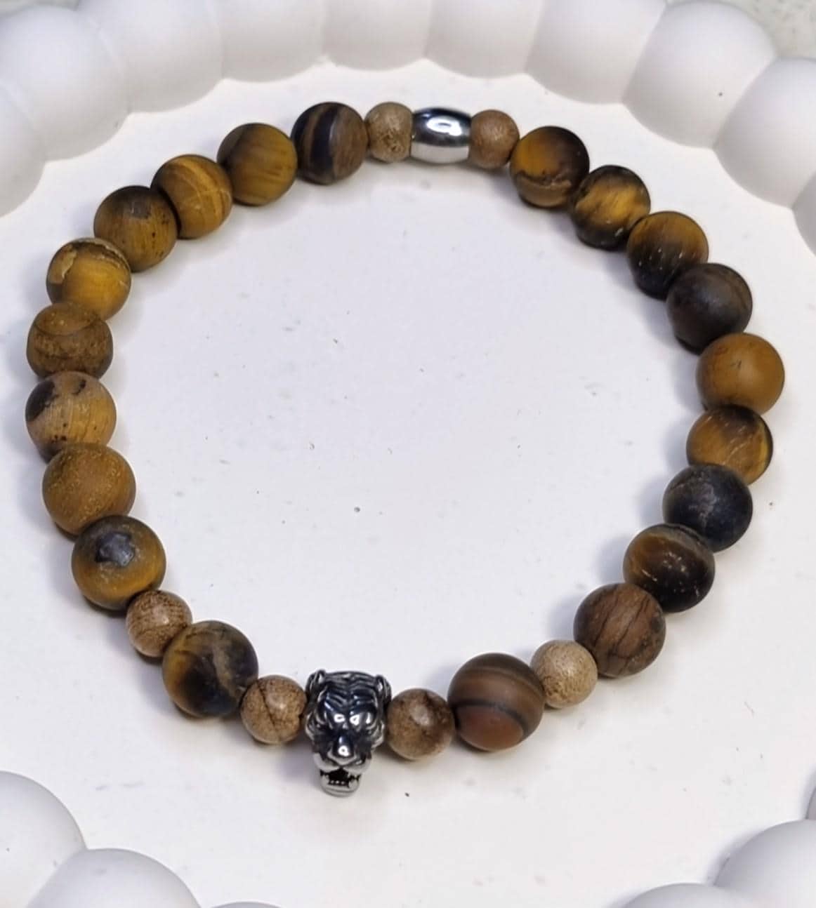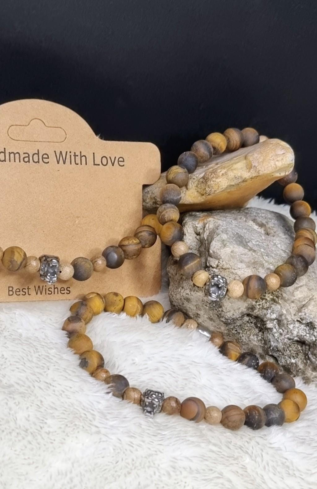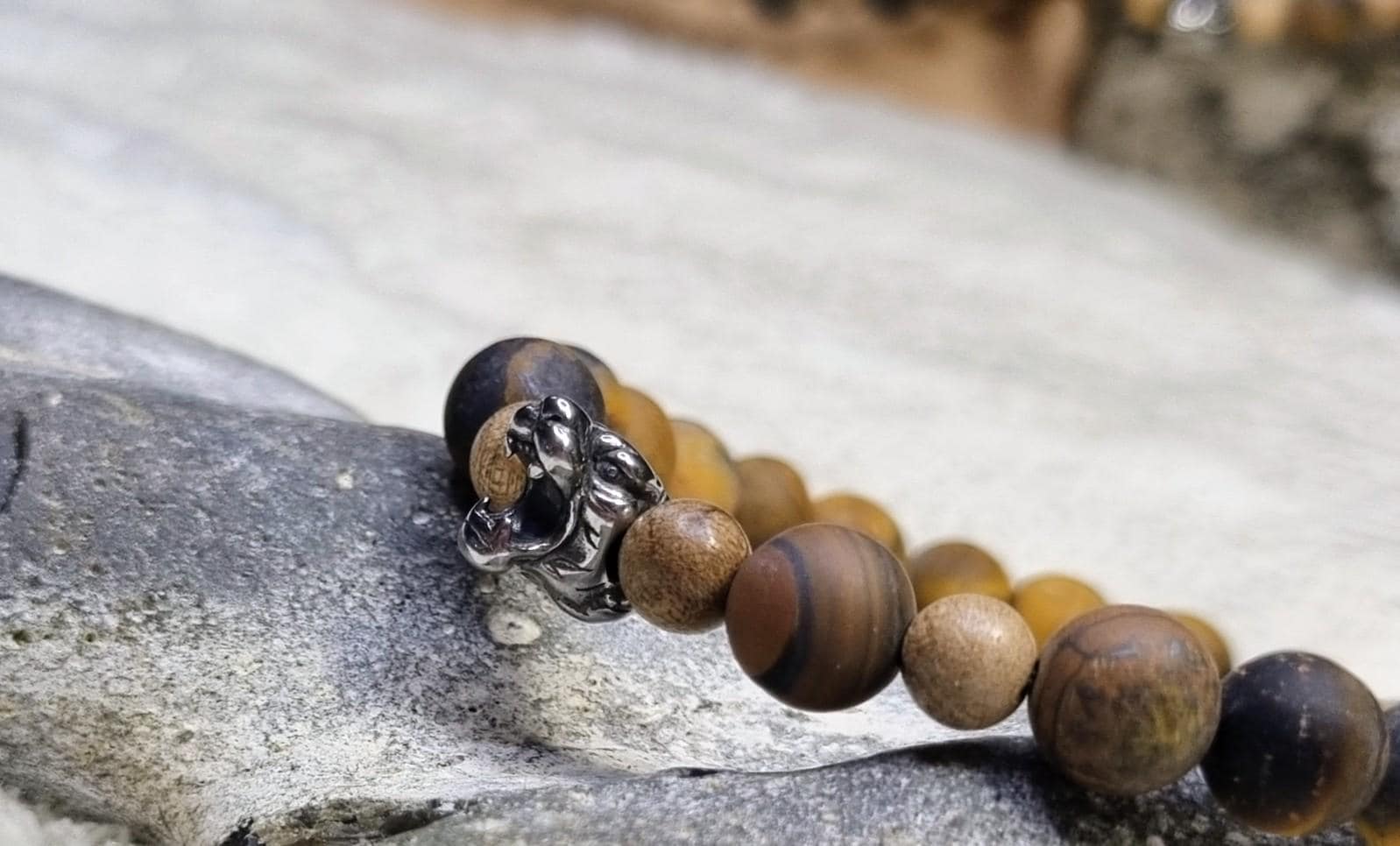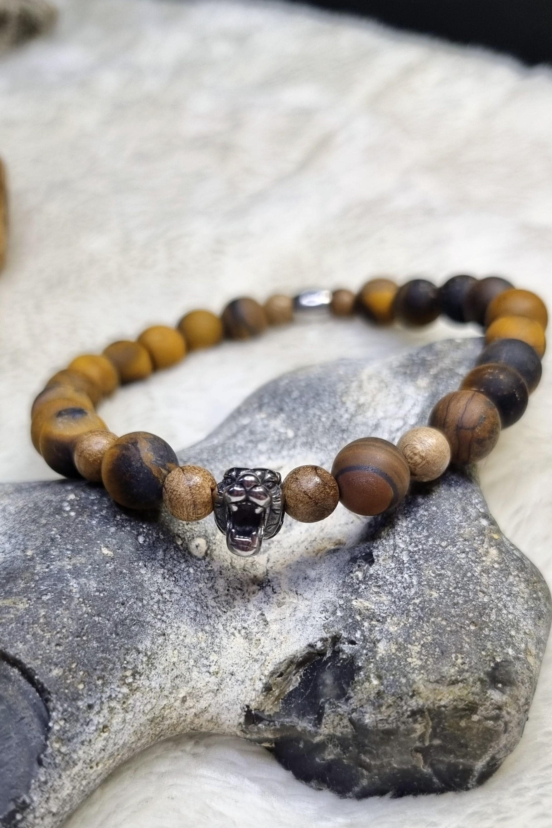 A powerful, masculine bracelet with an earthy color effect and a comfortable feel.