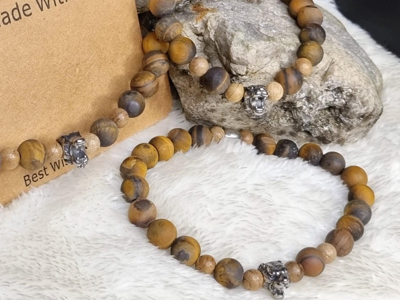 • Tiger's eye: frost-matte, yellow-brown, semi-precious stone