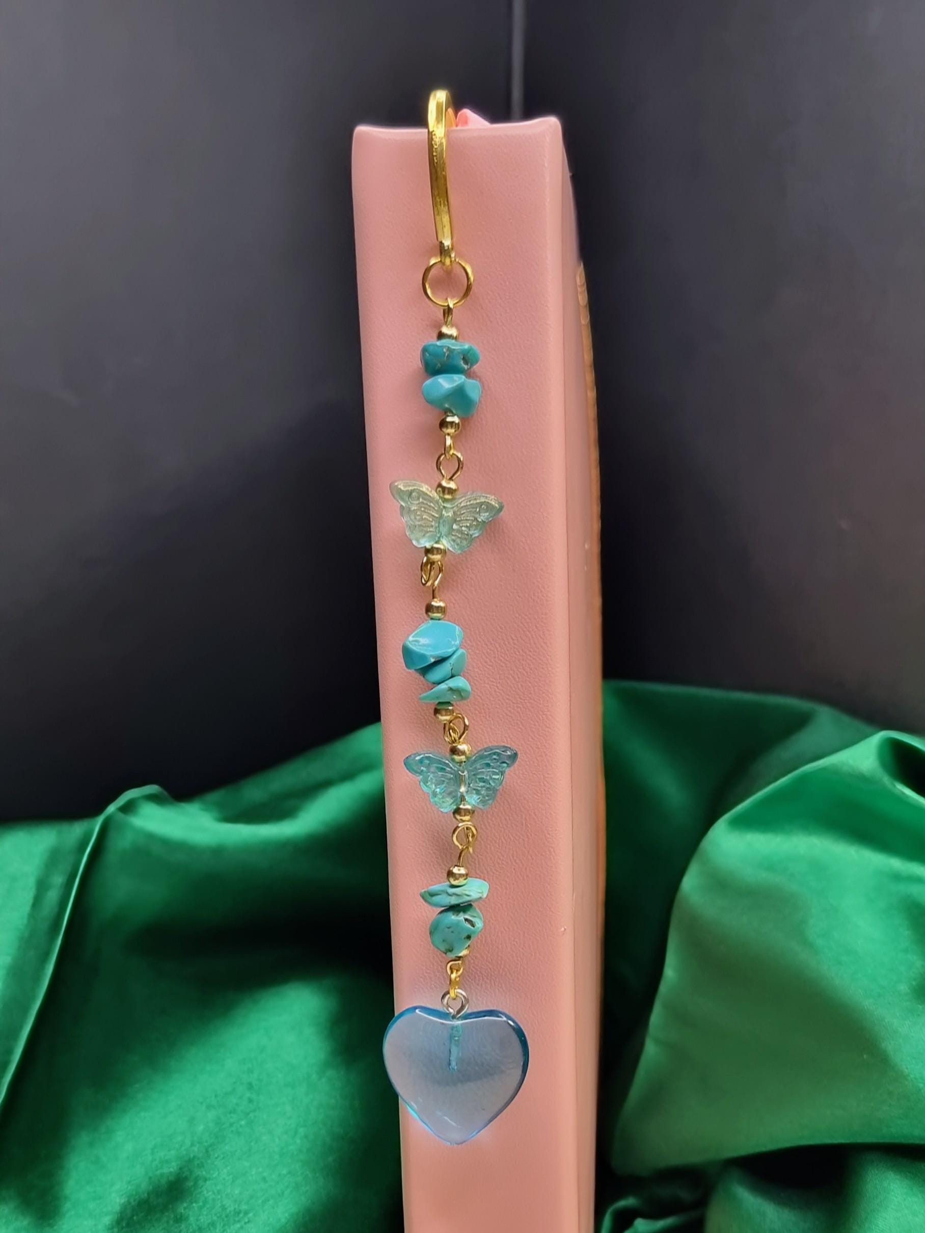 Synthetic gemstone chips, delicate glass butterflies, and a glass heart pendant were used in the design. The spacer beads and headpins are made of 18K gold-plated stainless steel, ensuring stability and a high-quality appearance.