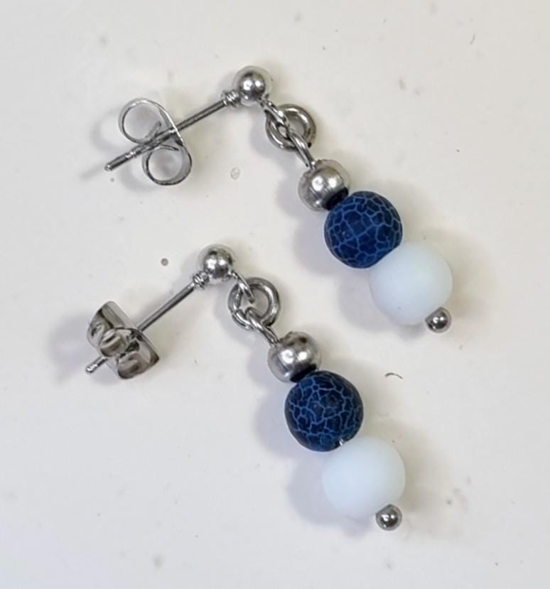 Simple, modern stud earrings made of 304 stainless steel with two harmoniously matched stone beads.